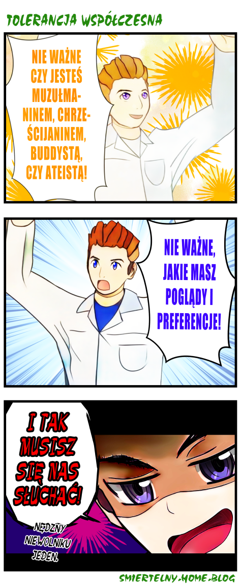 Jednym z najbardziej narzucanych poglądów, jest pogląd, że każdy może mieć własny pogląd… Słyszeliście o nowych zaostrzeniach? Miarka się przebrała. Postanowiłem zaprotestować: Dlaczego w obliczu kryzysu, narzuca mi się poglądy w które nie wierzę!?